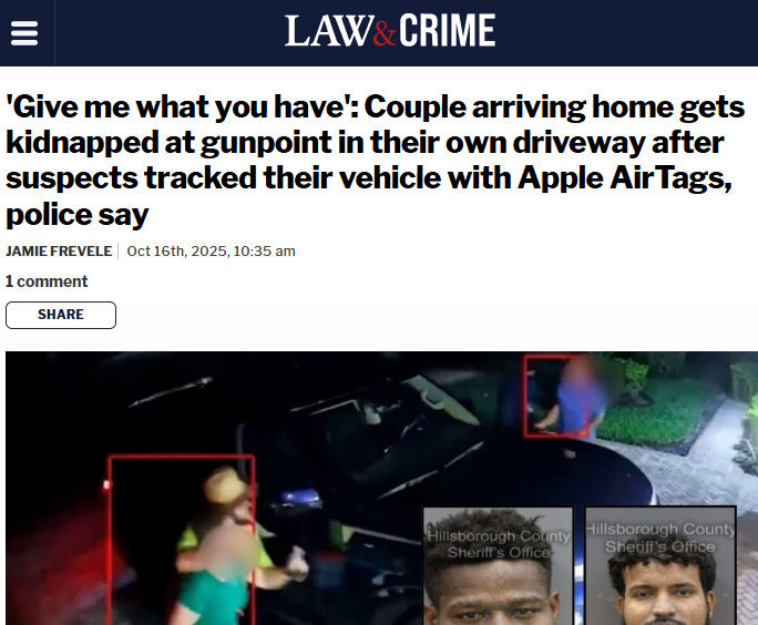 A Florida couple recently came home from a night out and were ambushed in their driveway. Police later found an active AirTag taped to the couple’s SUV and tied it back to the suspects.