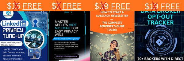 Member HubAnnual members: claim your 2026 guide bundleAnnual paid members get 100% off the Secrets of Privacy Library: 2026 annual subscriber edition on Gumroad, valued at over $150. Here’s a sample of what you get:Here’s how to get your exclusive link: Continue reading this post for free, courtesy of Secrets of Privacy.Claim my free postOr purchase a paid subscription.