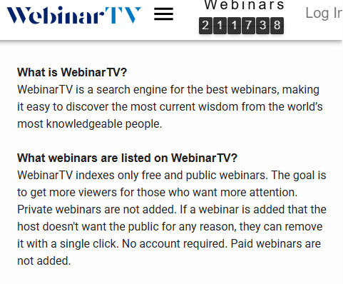 WebinarTV describes itself as “a search engine for the best webinars.”